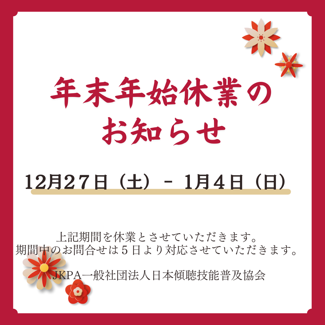 本年も、傾聴スキルを広く正しく普及していきたいと思っています。
